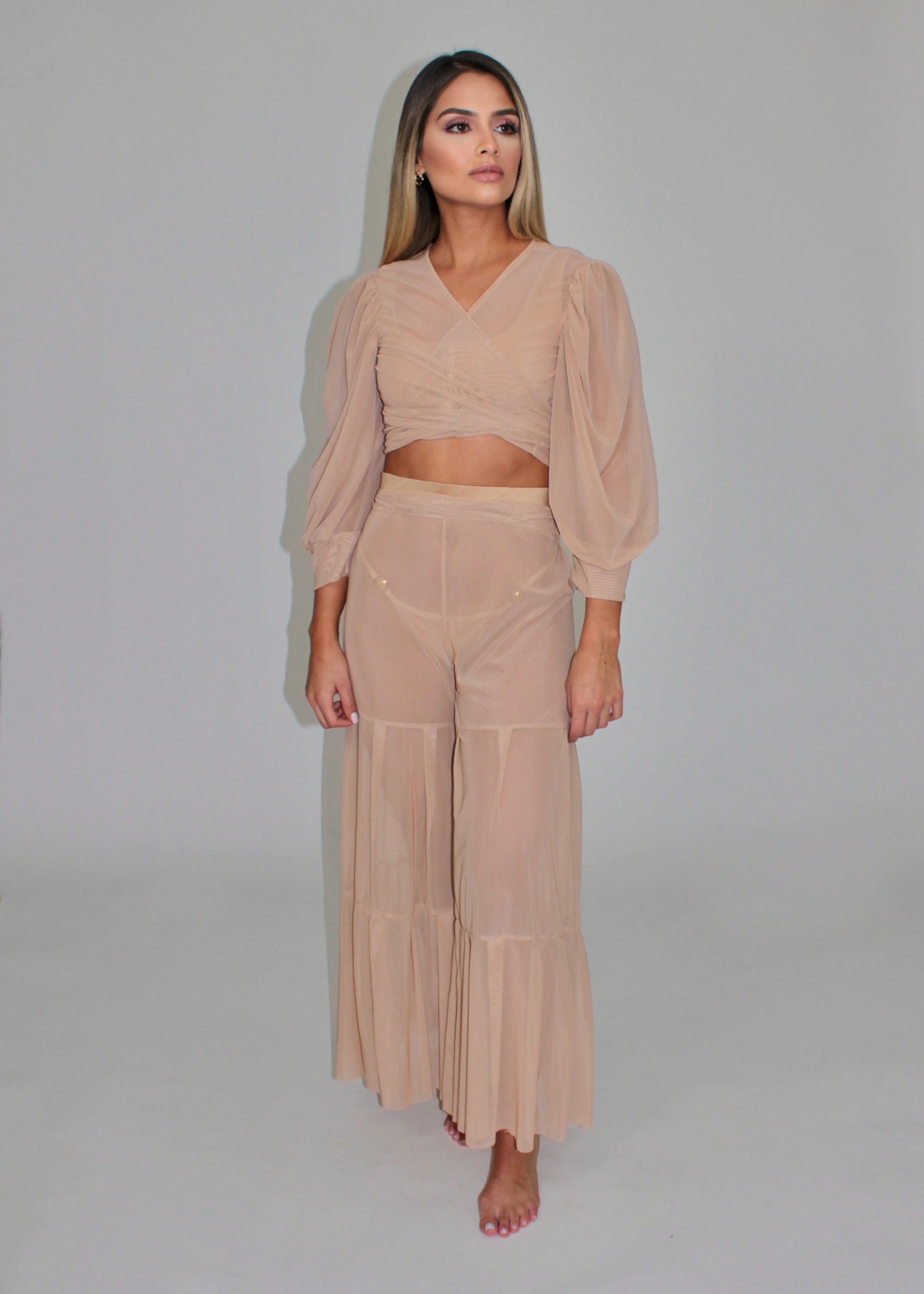 Two-piece set, designed to be lightweight and comfortable, ideal for the beach or casual events.