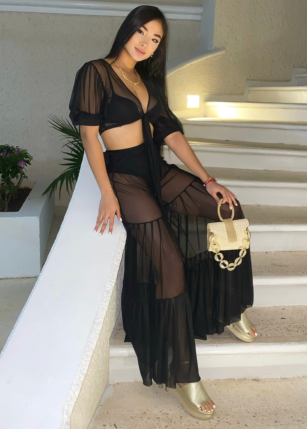 Two-piece set, designed to be lightweight and comfortable, ideal for the beach or casual events.
